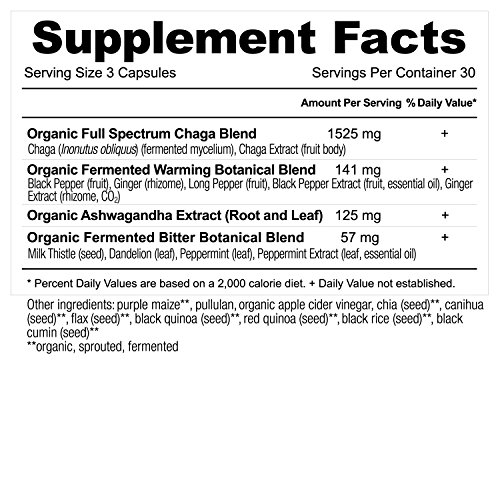 -. Feature : PREMIUM QUALITY: With a Full-Spectrum Fermented Chaga Blend, Fermented Warming Botanical Blend, Organic Ashwagandha Extract and an Organic Fermented Bitter Botanical Blend, Ancient Apothecary Fermented Chaga is specially formulated to provide antioxidant protection. / A NEW KIND OF EXPERIENCE: Made with Organic Chaga, powered by fermentation and infused with organic essential oils, Ancient Apothecary Fermented Chaga capsules are designed to fight free radicals and support healthy skin. / FERMENTED: What sets Ancient Apothecary Herbals apart? Live Fermentation, Essential Oils Infusion, Organic Herbs & Spices, and a delivery system of Warming Botanicals and Digestive Bitters which are non-GMO, vegan, gluten free and based on ancient Ayurveda medicine. Ancient Apothecary Fermented Herbs are powered by fermentation - our own proP.R.Ietary, patent-pending, dual-stage, live fermentation process. / PROTECTIVE: With antioxidant-packed Fermented Chaga, you can support healthy skin (through collagen biosynthesis) and alleviate the effects of stress and anxiety. Who doesn't want healthy-looking skin and to fight stress? / TRY IT RISK FREE: Buy with confidence when purchasing exclusively from Ancient Nutrition. Click the "Add to Cart"button to give Ancient Apothecary Fermented Chaga a try. If you're not 100% satisfied with your purchase, Ancient Nutrition will happily refund your order within 30 days of purchase. It's that simple!*