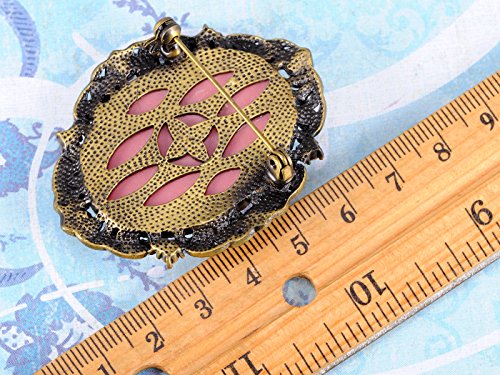 UNIQUE DESIGN: Brooch with pink rhinestones, pink colored flat stone, and enamel rose design