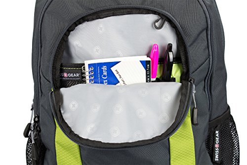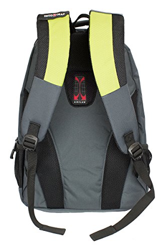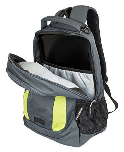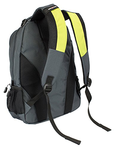 -. Feature : Head back to school, around town or on your next weekend adventure in style with the Swiss Gear grey & lime green laptop backpack. / Large main compartment with built-in padded, laptop sleeve designed to fit most 15" portable computers / Integrated, padded tablet pocket and 2 mesh side pocket drink holders. / Padded, Airflow back panel with mesh fabric for superior back ventilation and support. / Organizer pocket with key clip and divider. Ergonomically contoured, padded shoulder straps with breathable mesh. - 19"