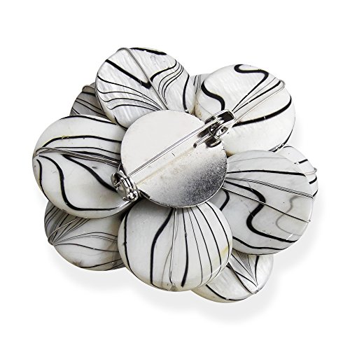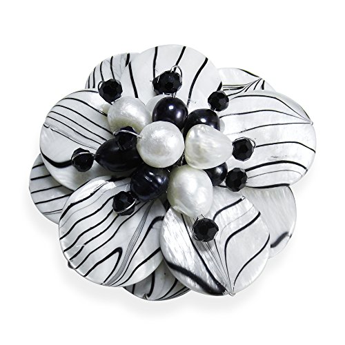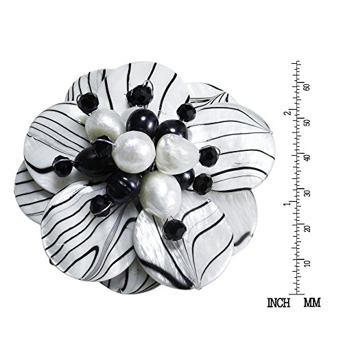 -. Feature : Material: Stainless steel metal | Weight: 28.3 grams / Design Measurements: 66 mm (2.60 in) wide x 66 mm (2.60 in) long / Stone: Mother of pearl, Cultured freshwater pearls (natural and dyed), Crystal / Style: Pin/Brooch | Pearl Grade: B-C | Color: White, Black / Includes an official 'AERAVIDA Fair Trade Sourcing' Card with certified Seal of Authenticity.