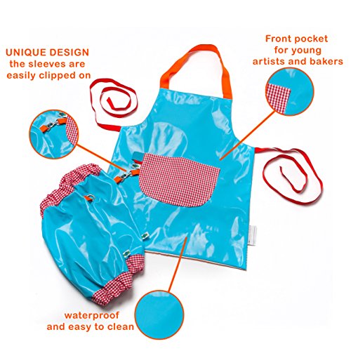 Kiddim Aprons for Children,Kids Apron for Arts and Crafts-Art Smock and Kid Smocks for Painting and Baking,Toddler Waterproof Play Apron,Pale Blue kids Apron With Sleeve Protection and a Front Pocket