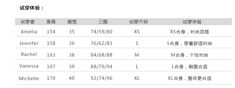 | 紧身 | 修身 | 适中 | 休闲 | 宽松 |