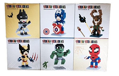 -. Feature : 6 pc set including your favorite superheros! 200-300 pcs per model. / Set includes 6 unique heroes - batman, superman, iron man, hulk, captain america, spider man. / Each figure comes with retail box, multi-language instruction manual, display stand, and mini building blocks (reference picture). / Recommended age 6+. 100% brand new with original package. / Great gift item. 100% non-toxic materials.