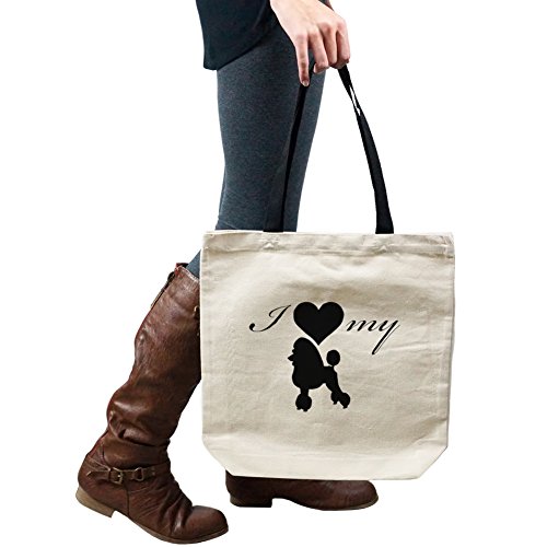 I Love My Poodle Dog Silhouette Heart Tote Handbag Shoulder Bag Purse