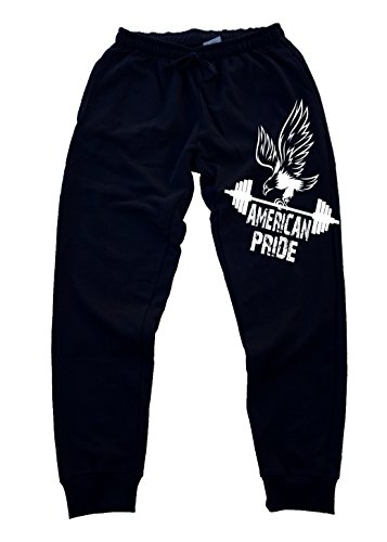 -. Binding : Apparel -. Brand : Interstate Apparel Inc -. Department : mens -. Feature : Joggers Fitted Training Pants / American P.R.Ide Eagle / Covered Elastic Waistband and Drawcords For Adjustability / 55% Cotton, 40% Polyester, 5% Rayon / Cuffed Bottom, With Side Pockets, and 1 Back Pocket -. PackageQuantity : 1 -. ProductGroup : Apparel -. ProductTypeName : PANTS -. Title : American P.R.Ide Eagle Men's Jogger Training Black Pants Running Fitted