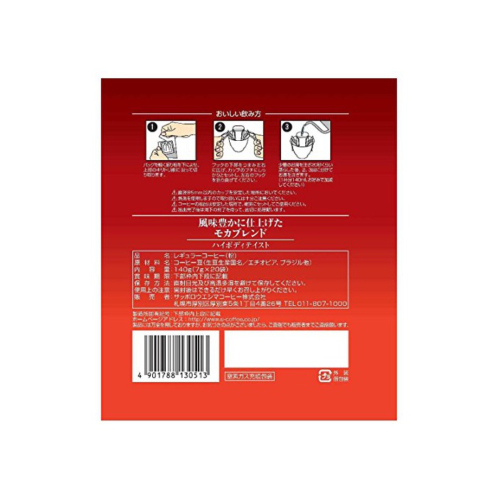 원본상품명:サッポロウエシマコ?ヒ? ユ?コ?ヒ? ドリップコ?ヒ? 風味豊かに仕上げた モカブレンド 7g×20個