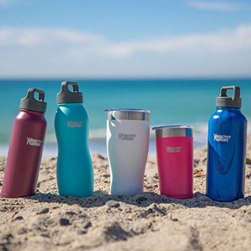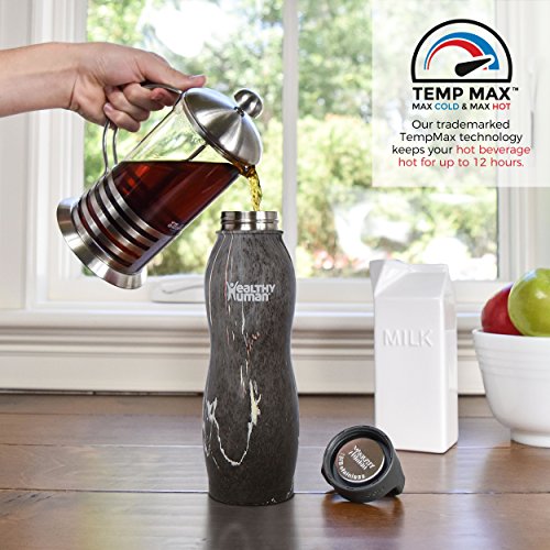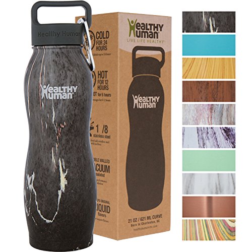Healthy Human Curve Water Bottles - Cold 24 Hours Hot 12 Hours. Stainless Steel Double Walled Vacuum Insulated Thermos Flask with Carabiner & Hydro Guide