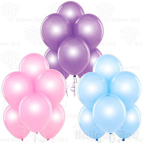 12 Inch Pearlized Latex Balloons (Premium Helium Quality), Pack of 72, Pearl Pink, Pearl Baby Blue, Pearl Lavender