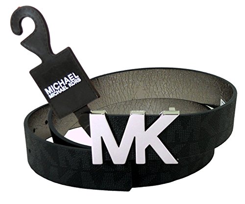 -. Title : Women's Signature Belt Black with Silver MK Buckle