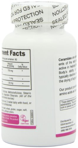 Studio : Deva Nutrition Publisher : Deva Nutrition Binding : Health and Beauty Product Description Deva Nutrition is proud to introduce its plant derived ceramide (phytoceramide) skin support supplement. Ceramides are the main component in the intercellular lipid layer. With the help of the ceramides, our skin forms a barrier which protects it from exogeneous factors and prevents water loss. Ceramide is considered to be a safe agent with no or very little allergenic effects. 0