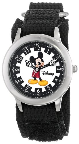 Keep track of time with this officially licensed disney stainless steel kid's time teacher watch by ewatchfactory on your wrist. The timepiece displays artwork from your favorite disney character on the face, and is designed with labeled "hour" and "minute" hands to help young ones learn how to tell time. This classic watch has a polished and matte steel finish and a precision japan movement for accurate time keeping and a 1 year manufacturer warranty.Feature