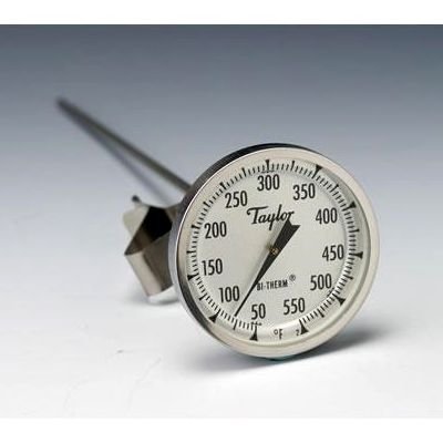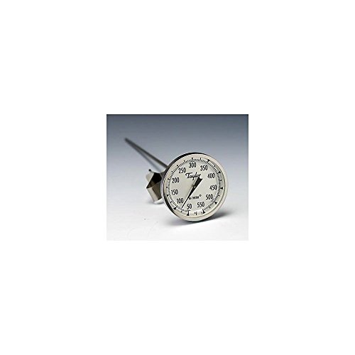 Studio : Taylor Precision Products Publisher : Taylor Precision Products Product Description Taylor Precision Candy / Deep Fry Thermometer w/ 12" StemThis thermometer has temperature range from 50° to 550° F with a degree division of 5° F. Model #: 6084J12 2" dial Range: 50° to 550° F Adjustable pan clip 12" stainless steel stem Black pointer Height: 2.4" Width: 12.15" Length: 16" Weight: .26 lb 113238 0