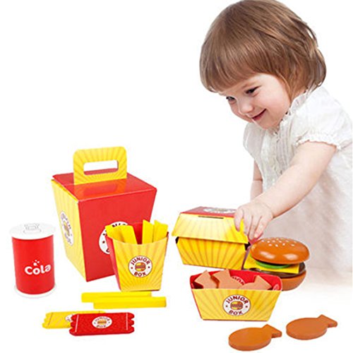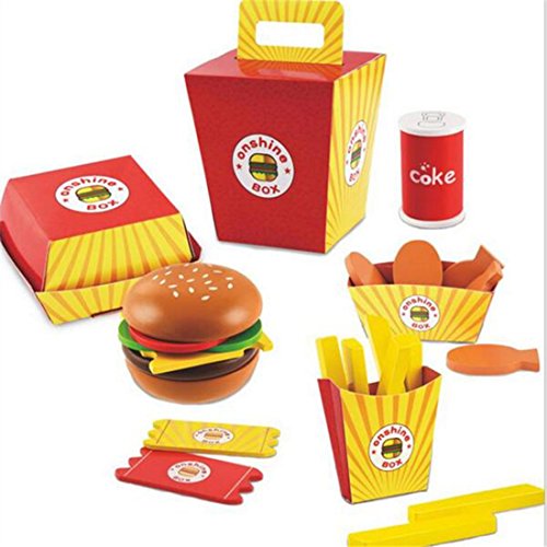 26pcs Baby Toy Kids Pretend Play Lunch Food Wooden Toys French Fries Hamburger Set Kitchen Toys Gifts