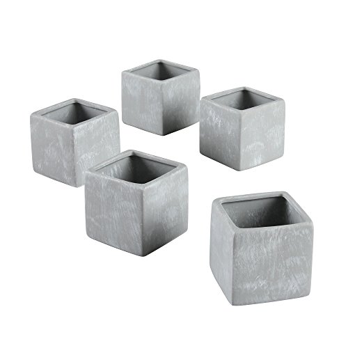 Ivy Lane Design Smooth Square Favor Flower Pots, Gray Stone, Set of 5