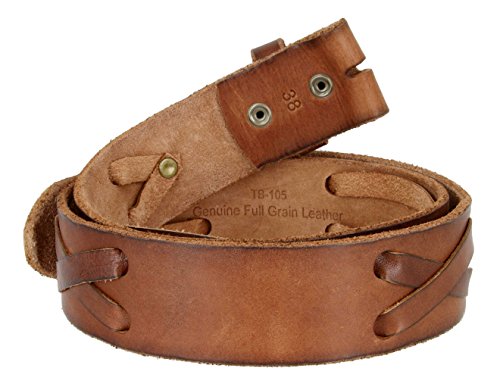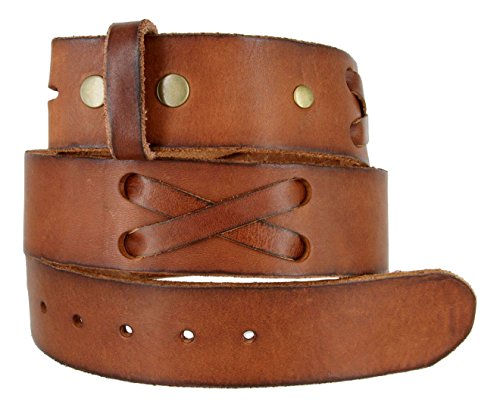 -. Binding : Apparel -. Brand : Belts.com -. Department : mens -. Feature : 100% Full Grain Genuine Leather Western X-Laced Casual Jean Belt Strap / Casual jean belt, can be worn with shorts, etc. / Features brass snap system to add favorite buckle, "X" leather lacing / 1 3/4" (44mm) Wide / Belt measured from where the leather ends at the buckle end to the middle hole at the tip end -. ProductGroup : Apparel -. ProductTypeName : ACCESSORY -. Title : 100% Full Grain Leather Western X-Laced Casual Jean Belt Strap 1.75" Wide