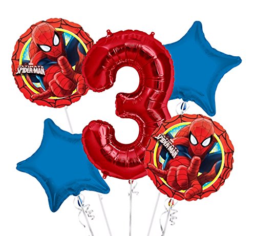 -. Title : Spiderman Balloon Bouquet 3rd Birthday 5 pcs - Party Supplies