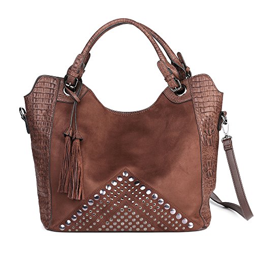 -. Title : VANILLACHOCOLATE Womens Large Purse Suede Crocodile Embossed Leather Fashion Designer Handbag Hobo Tote