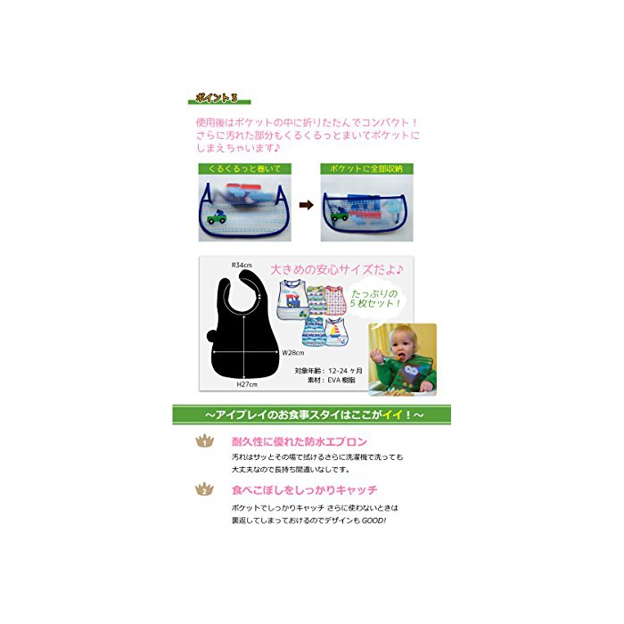 I play iplay 아이 플레이 식사 에이프런 5 매세트 방수 스타이(유아용 턱받이) 《비부》 먹어 찻잔을 씻은 물을 담는 그릇(흘림) 포켓 첨부 12-24개월