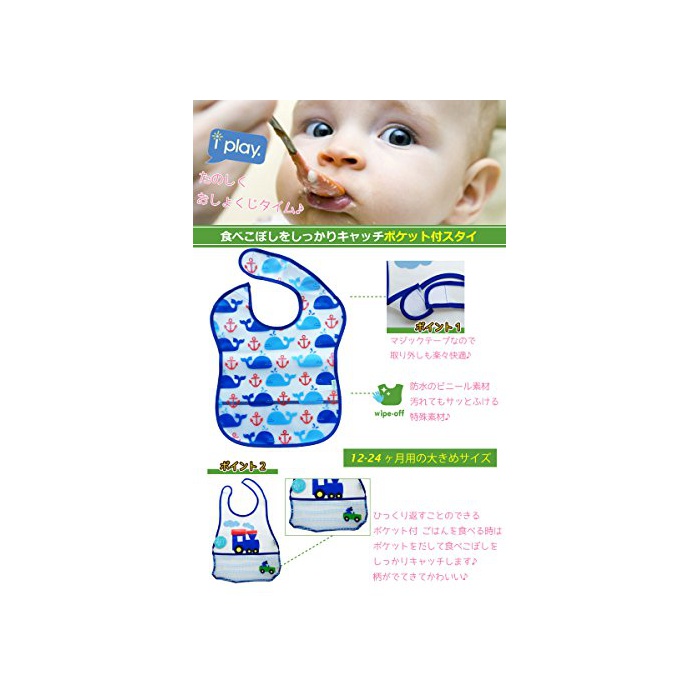 원본상품명: iplay アイプレイ お食事エプロン 5枚セット 防水 スタイ ビブ 食べこぼしポケット付 12-24ヶ月 (ネイビ?セイリング)
