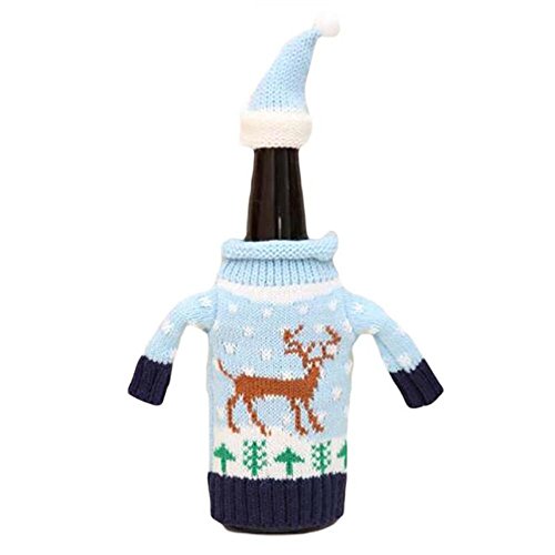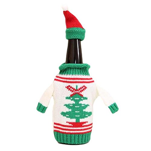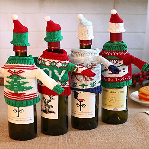Christmas Bottle Cover Bag Knitted Wine Sweaters Cover Dress with Hat Set of 4 PCS