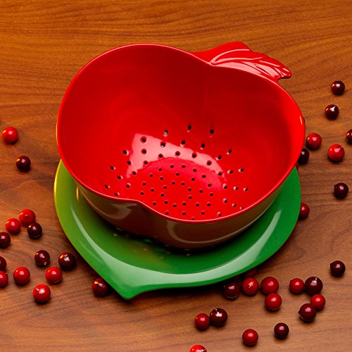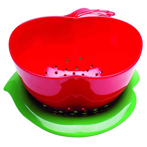 Zak Designs Apple Colander with Dew Bowl, Red and Green