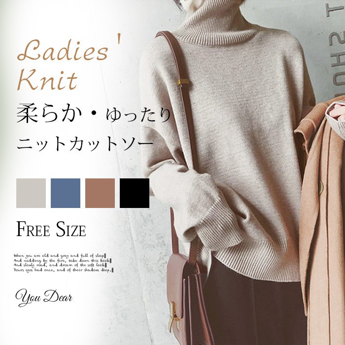 ■キーワード:ニット セーター レディース ニットセーター コットンニット ニットソー トップス 長袖 コットン 綿 ハイネック タートルネック 無地 柔らかい シンプル 着痩せ お洒落 きれいめ 秋 冬 20代 30代 40代★素材:ポリエステル★厚さ:厚手 ★カラー:黒、ベージュ、コーヒー色、ブルー(写真参考)※お客様ご使用のPC環境により商品画像のカラーが多少異なる場合があります。仕入時期により多少デザインなど異なる場合があります。★サイズ:フリーサイズF:着丈59 バスト88-118※サイズは人の手によって測っているため、(2-3 cm前後)に誤差が生じる場合がございますので、予めご了承くださいませ。※素材の特徴で、お洗濯はネット入り、脱水15秒程度、直後形を整え吊り干し、シワに気になる場合は中温でアイロン掛けしてください