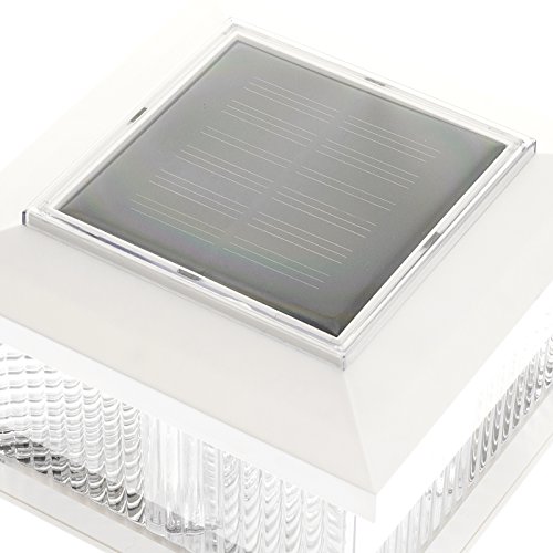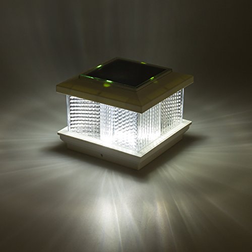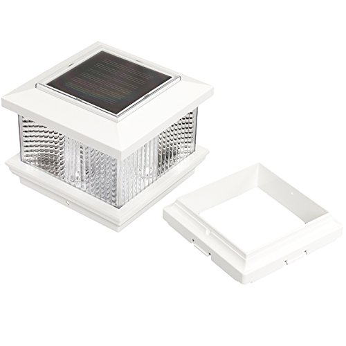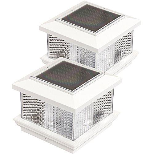 (2 Pack) GreenLighting Solar LED Post Cap Light for 5" x 5" PVC Posts w/ Wood Post Adapter (White)