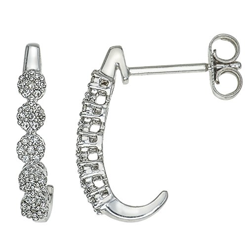 Created in a J-hoop design, this pair of hoop earrings are simply beautiful. Studded with clusters of shimmering white diamonds, these sterling silver earrings are secured with friction backs.Feature