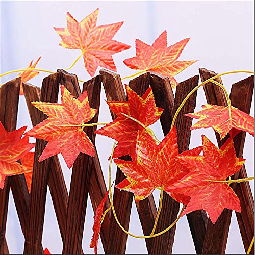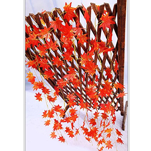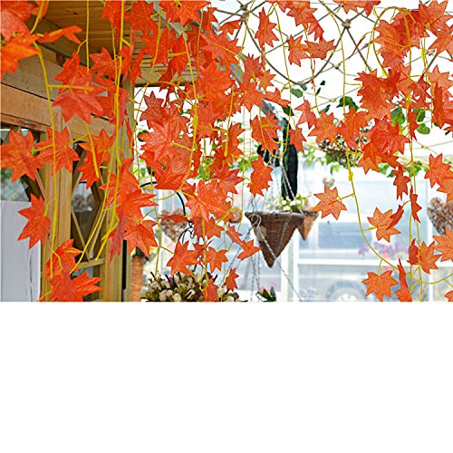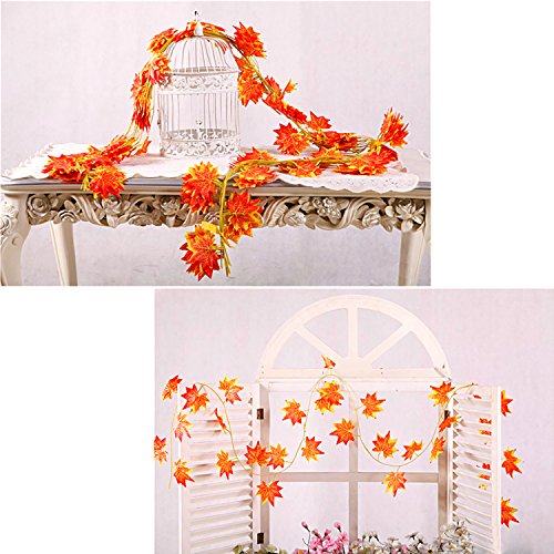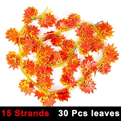 15 PCS Autumn Artificial Silk Maple Leaf Garland Fall Decoration,Hanging Plant Orange Leaves Wedding Party Garlands