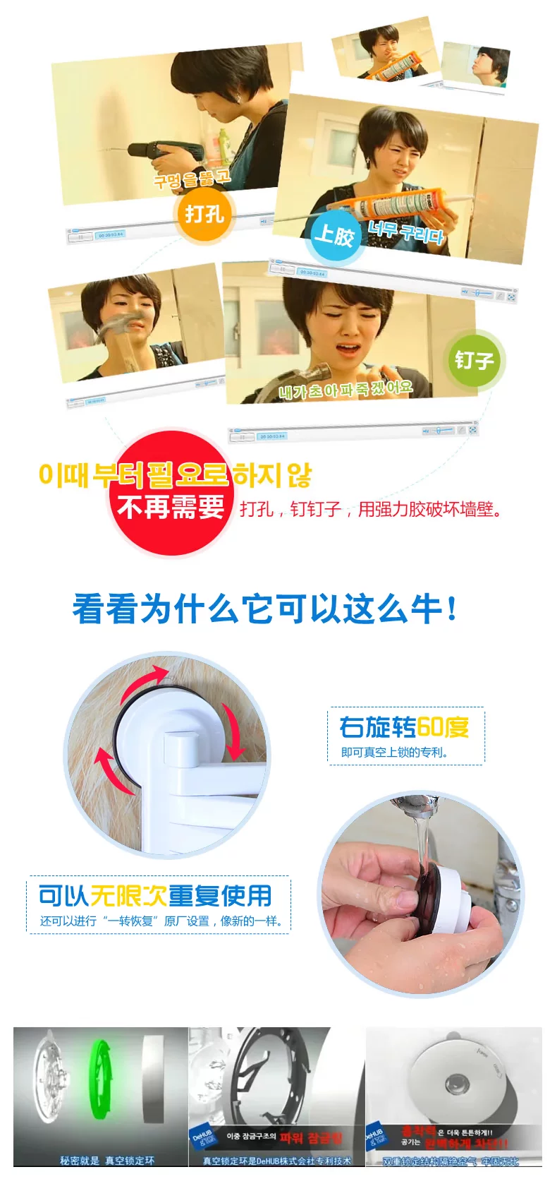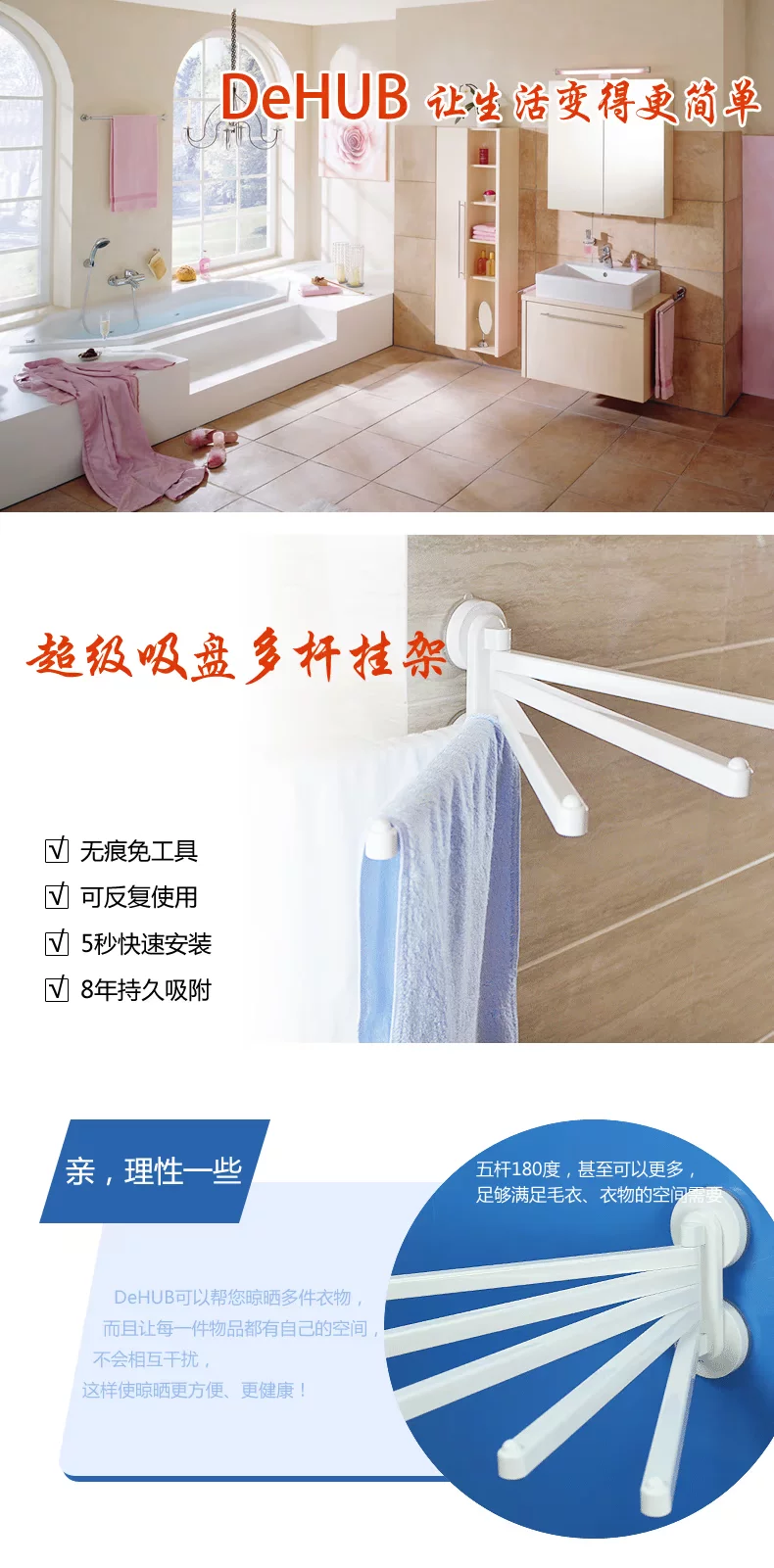 Korea dehub strong suction cup towel rack towel rack 5 multipurpose laundry racks super suckerMaterial: pvc.abs plastic