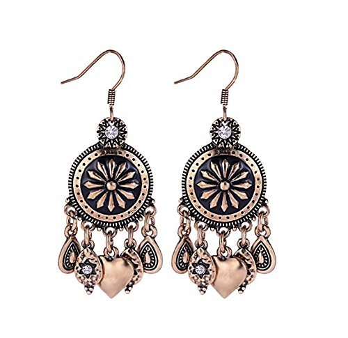 Unique Medallion Shield Design Round Earrings with Heart and Rhinestone Dangles Goldtone Earrings Measure 2.25 Inches Long Contemporary Gypsy Style Dangle Earrings She'll Love To Wear Organza Bag Brand : Beautiful Silver Jewelry Item model num : BSJ8165 MPN(PartNumber) : BSJ8165 Package Dimensions(LxWxH) : 8x8x2cm ; 0 g