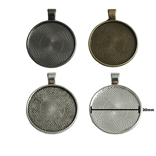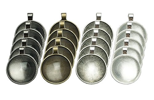 20 Counts 30mm Round Circle Bezel Pendant Trays with 20 Counts Glass Cabochon Round Dome Tiles for Jewelry Making, 40 Counts by Shxstore