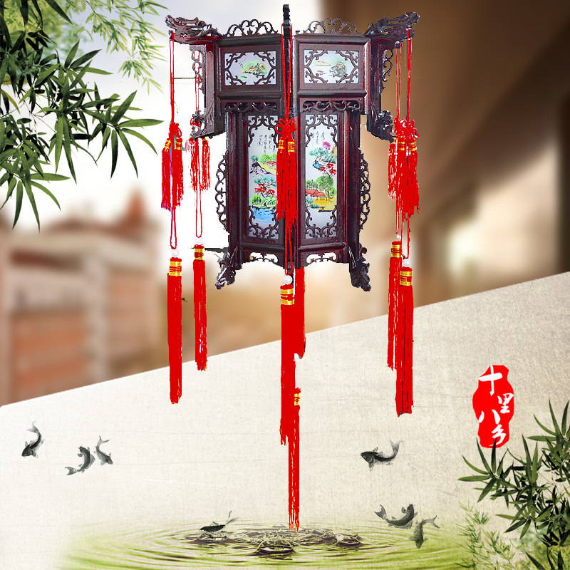 color2两层山水画宫灯45#,Two-story landscape palace lantern 45 #