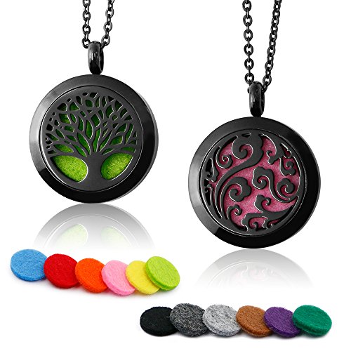 Our rose gold aromotherapy diffuser necklace chain length is 24 inches. So just adjust the length you prefer, longer or shorter. There are two patterns for the locket, two styles of experience.12 different colors felt pads for your choice and they are washable.