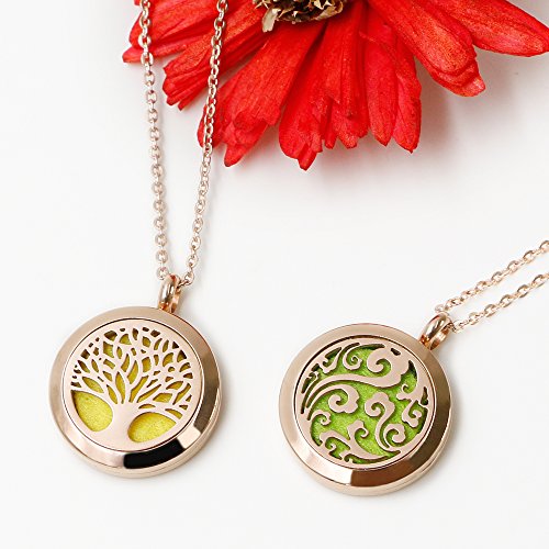 25mm Mini ROSE GOLD stainless steel necklace, fashion and pretty in Cloud & Tree of Life pattern, bring you a different experience to enjoy the benefit from essential oil. Try to match your different clothes and show your elegant temperament.