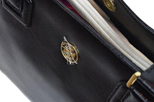 New with tags, style number 18169680 Crafted from luxurious saffiano leather with perfect proportions, it instantly takes your style uptown and inspire fashion envy everywhere you go. Exterior featuring rolled leather handles, signature Tory Burch logo gracing the front and side snap to expand the bag as you need. The interior boasts two open and one zip compartments, mirror along with open and zip pockets on the black colored logo lining.Feature
