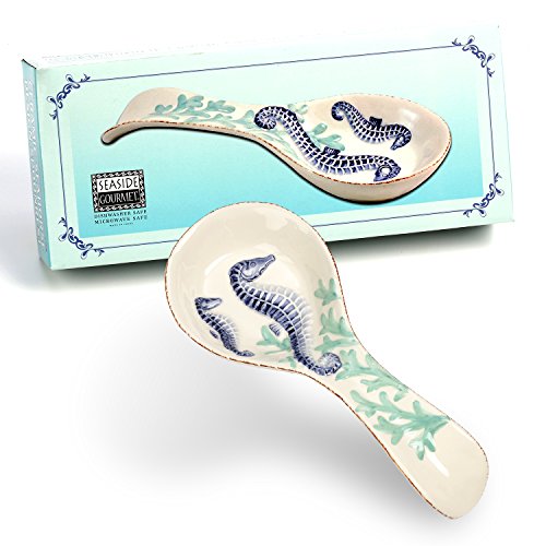 9.5 Inch Ceramic Spoon Rest with Intricate Seahorse Design