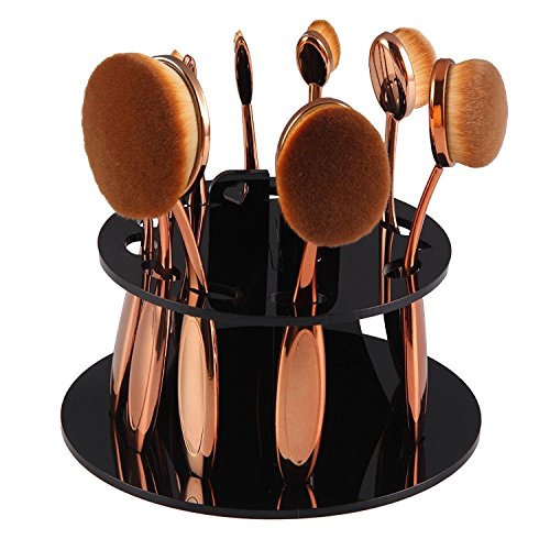 -. Title : 10PCS/Set Soft Oval Toothbrush Eyebrow Eyeliner Foundation Blush Lip Brushes Kit With Box US Stock Rose Gold+10 Holes Oval Makeup Brush Holder Cosmetic Brushes Drying Rack Organizer Shelf Tool (Black)