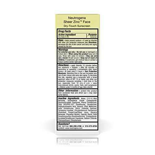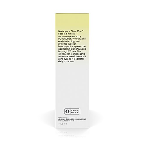 Help protect your facial skin from harmful UV rays with Neutrogena Sheer ZINC Face Dry-Touch Sunscreen. Formulated specifically for facial skin, this mineral sunscreen lotion contains antioxidants and layers invisibly under makeup. It features a naturally sourced 100 percent zinc oxide sunscreen formula that offers superior Broad Spectrum protection against burning UVB and aging UVA rays. Purescreen Technology helps absorb, reflect, and scatter dangerous sunrays, while Dry-Touch technology helps ensure that the sunscreen dries with a non-greasy, lightweight finish. Free of fragrance, parabens, phthalates, dyes, and irritating chemicals, this gentle water-resistant sunscreen lotion won’t sting eyes.Feature