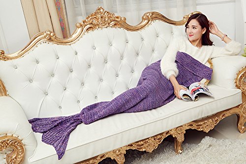 Kpblis Summer Mermaid Blanket Knitted Mermaid Blanket Tail for Kids and Adults, (Adults Purple 75"35")