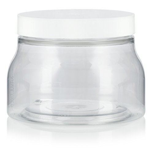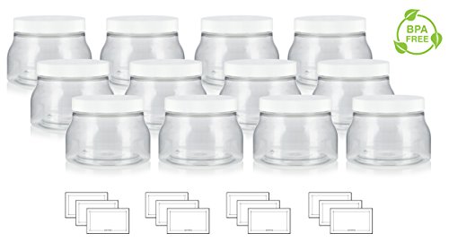 8 oz / 240 ml Clear PET Plastic (BPA Free) Tuscany Refillable Jar with White Lid - (12 pack) + Labels