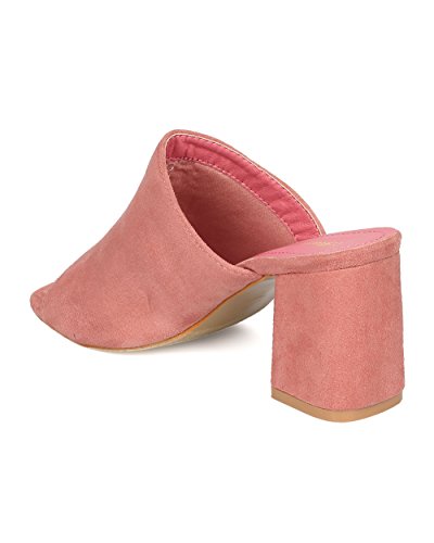 Indulge Women Block Heel Mule - Peep Toe Chunky Heel Slide - Open Toe Slip On Heel Sandal - CIA...