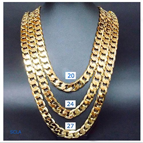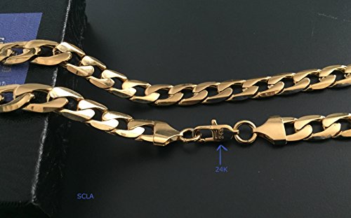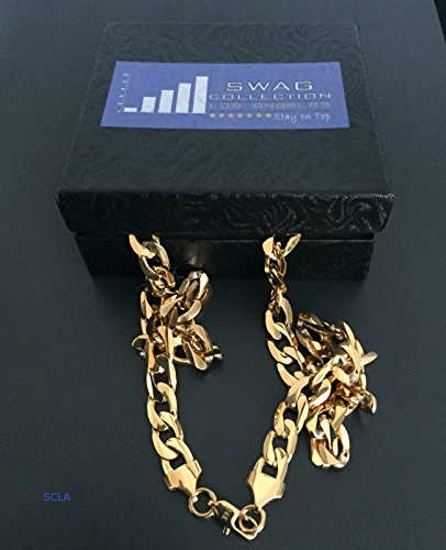 -. Feature : ►►Crazy Low introductory price For Amazon This Is For A Limited Time Only! Ideal for men, women, teens. Makes a great GIFT--Comes In A Small Cotton Filled Swag Collection LA Gift Box / ►►BEWARE OF CHEAP IMITATIONS! LIFETIME WARRANTY GUARANTEED ONLY WHEN SOLD BY SWAG COLLECTION LOS ANGELES! Real 24 Karat gold, laid over a heart of semi-precious metals. 9.3MM 24" & 28". more than 20mls of 24 karat gold per chain - 10 times more gold than in the cheaper electroplate that changes color quickly, WE USE LATEST PVD PROCESSING TECHNOLOGY to provide a good gold color and a tarnish resistant surface. / ►►We only use 24k GOLD (THE PUREST form of gold which has a distinctive shinny pure gold ) instead of 10k or 14k! No cheap metals copper (turns green) or nickel which can irritate your Skin, Chains have been tested and they are NICKLE, LEAD and ALLERGY FREE so your skin is safe with our chains. / ►►Trade secret special SEMI-PRECIOUS alloy of the best bonding metals ensures the LOOK OF SOLID GOLD and LONG LIFE of the item. Feel Free to check out our matching Bracelets! ►WE USE LATEST PVD PROCESSING TECHNOLOGY to provide a good gold color and a wear resistant surface. Email us for the different sizes. / ►►100% UNCONDITIONAL FREE LIMITED LIFE TIME GUARANTEE AND REPLACEMENT FOR ALL SWAG COLLECTION LA JEWELRY ITEMS! Due to the fact that each piece is carefully hand made, sizes may vary just a slightly.