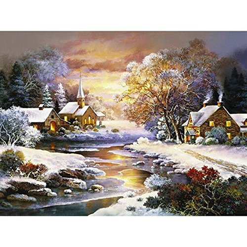 Ant-Tree 15.75"x11.81" Winter River House 5D DIY Diamond Painting Kit Full Square Rhinestone Embroidery Cross Stitch Arts Craft for Home Wall Decoration
