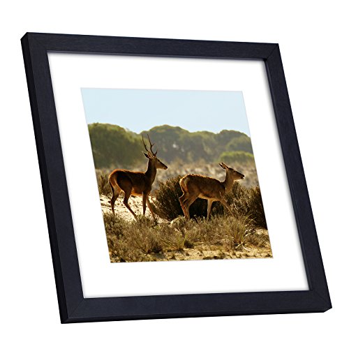 SONGMICS 11 x 11 Picture Frame or 8 x 8 Frame with Mat - Square Photo Frame Wall & Tabletop Wood Grain Black URPF41BK