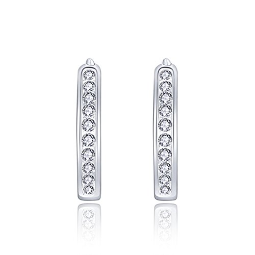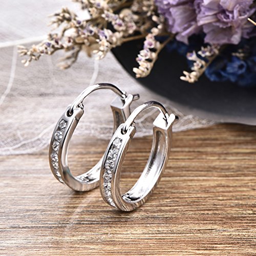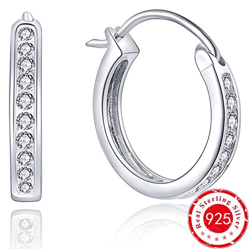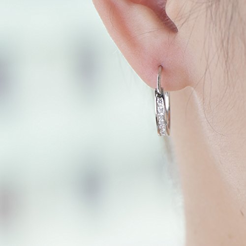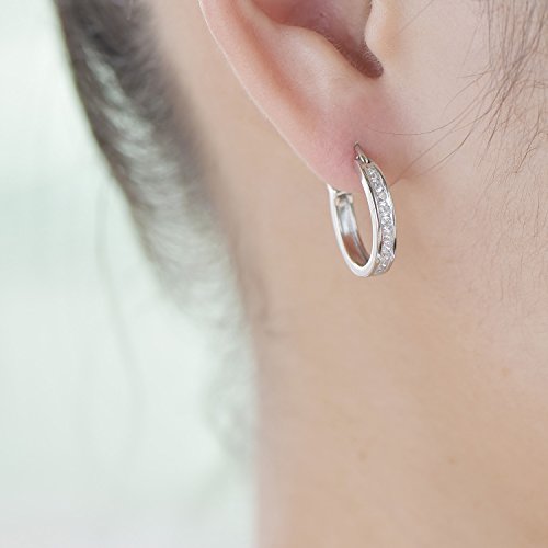 Huggie Hoop Earrings for Women-YL Girl's Sterling Silver CZ Cubic Zirconia Channel Set Round Click On Huggie Hoop Earrings for Women