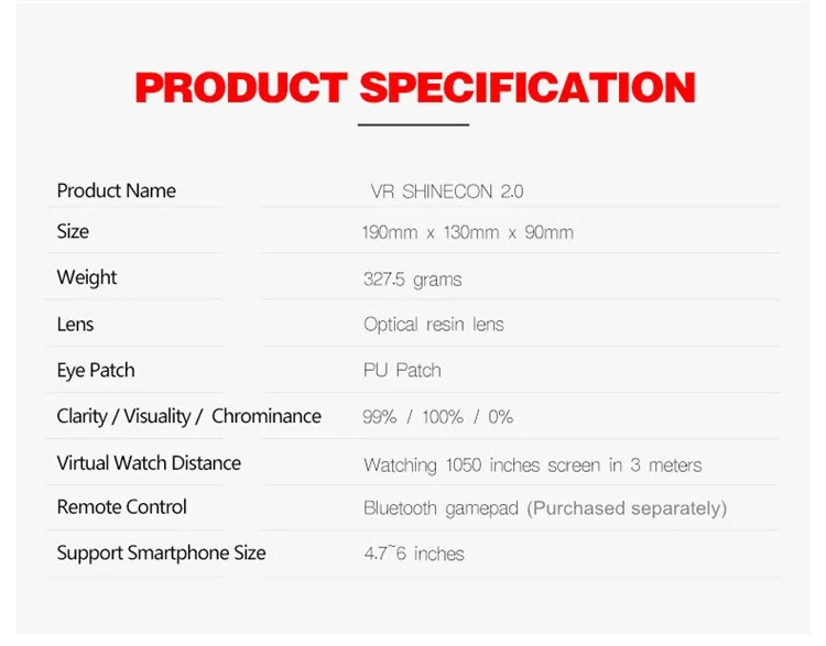 Model Number:VR SHINECON II 3D Glasses