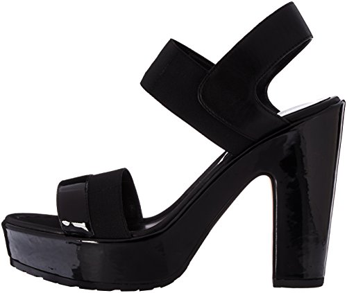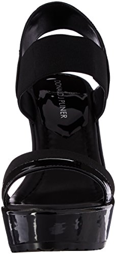 Studio : Donald J Pliner Publisher : Donald J Pliner Binding : Shoes Product Description Platform dress sandal detailed with djp's signature elastic combined with either patent leather or calfskin. patent leather wrapped wedge (black), or washed cork wrapped wedge (bone). lug bottom outsole. leather lined 0
