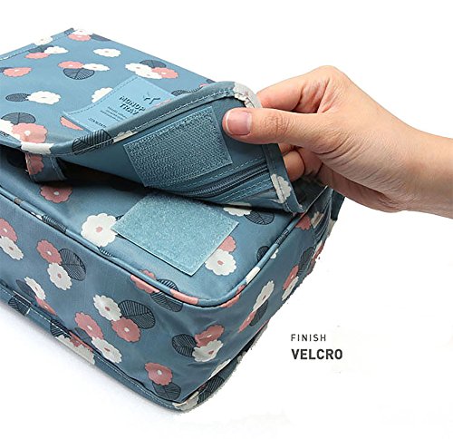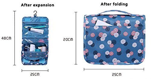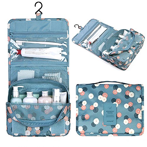 Portable Hanging Toiletry Bag,Organizer Cosmetic Bag with Hanging Hook Cherioll for vacation (One size, Blue Daisy)