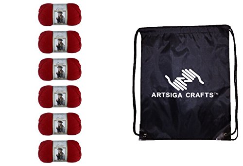 - Bundle includes 6-Pack Bernat Satin Solid Yarn Crimson 164104-04705 with 1 Artsiga Crafts Project Bag